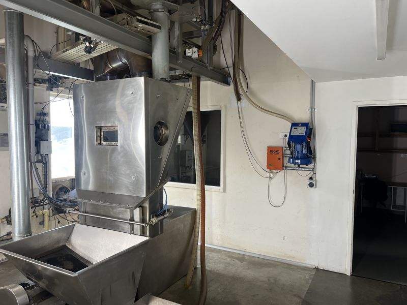 - Exhaust hood and coffee roaster in place